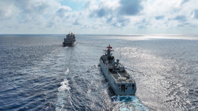 近日,南海某海域,南部战区海军某护卫舰支队开展全训考核,检验官兵协同能力及部队海上作战支援能力。