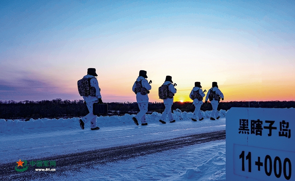 清晨,东方微红,晨曦将露。驻守黑瞎子岛的陆军某边防连东极哨所官兵,在营区升旗台前整齐列队,静候新一天的第一缕阳光。