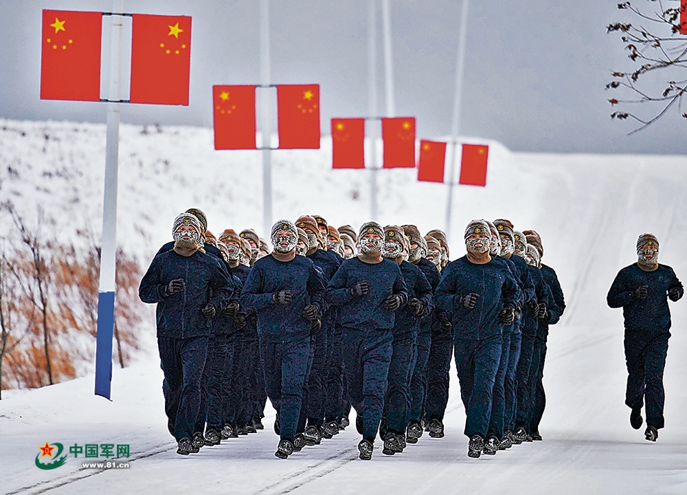 落日熔金,巡逻分队官兵踏雪归来。晚饭后,官兵们经过休整,到训练室进行体能训练。室外,朔风呼啸,卷起漫天飞雪。室内,官兵挥汗如雨、激情似火……