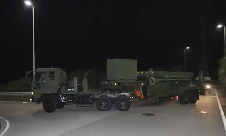 资料图:2023年4月24日,日本冲绳县,日本航空自卫队的C-2运输机抵达石垣机场,机上有装载了地空导弹“爱国者-3”发射装置的车辆(来源:海外网)