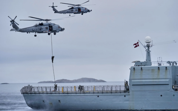 资料图:丹麦军队与多个欧洲北约成员国军队在格陵兰岛附近海域举行军事演习(来源:环球网)