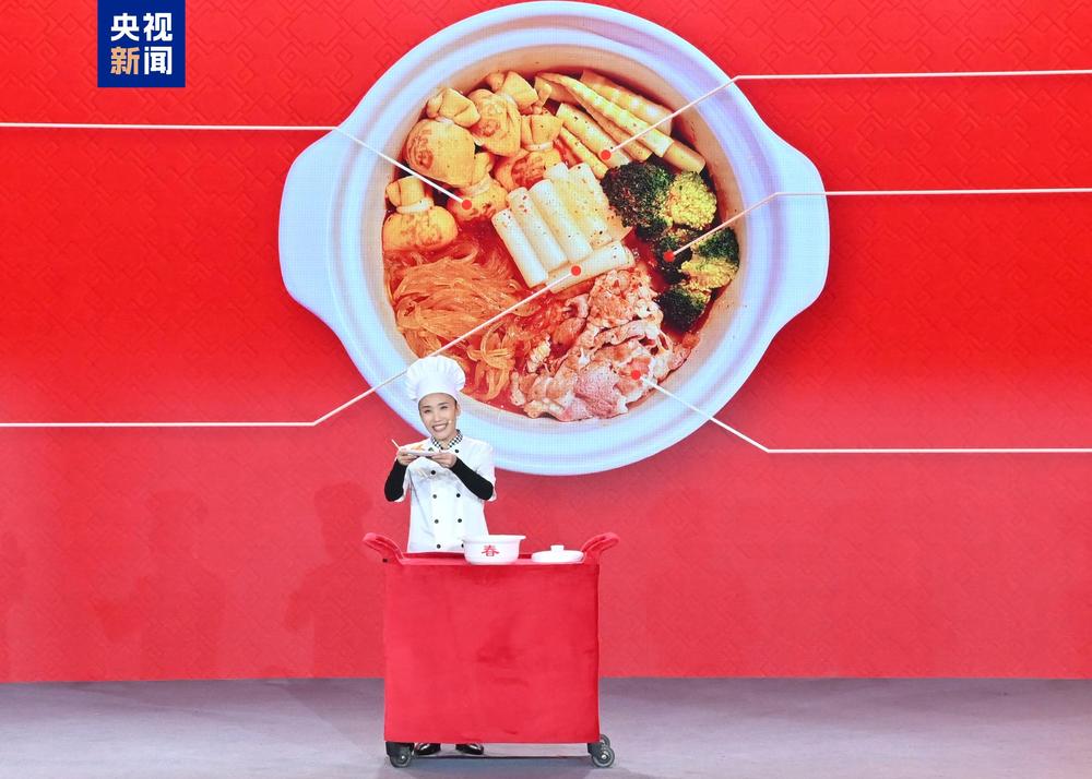 活动上,“春晚等着你”嘉宾、用烟火气温暖师生的延边大学食堂阿姨刘晓梅,用一道自创的“春晚限定”砂锅粉送上热乎乎的年味和暖融融的新春祝福。
