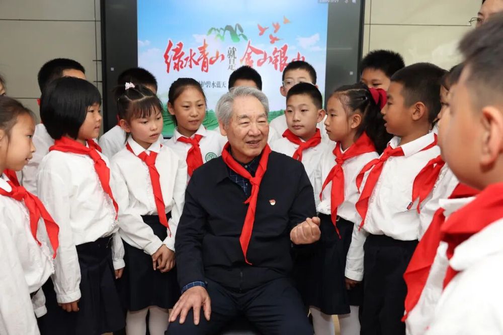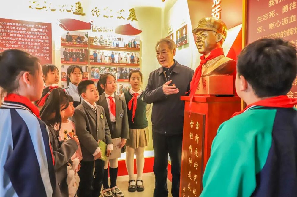 龙凡老人(中)给小学生宣讲红色故事(王丹 摄)